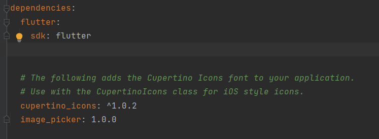 우선 pubspec.yaml로 들어가서 dependencies 안에 image_picker를 추가해 준다.